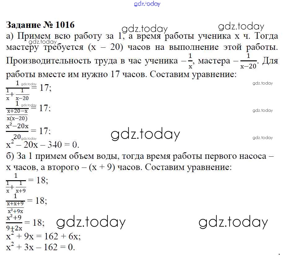 Ответы к Решение к упражнениям 1016 Учебнику по Математике для 6 класса Зубарева, Мордкович Мнемозина 2015