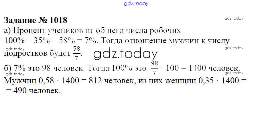 Ответы к Решение к упражнениям 1018 Учебнику по Математике для 6 класса Зубарева, Мордкович Мнемозина 2015