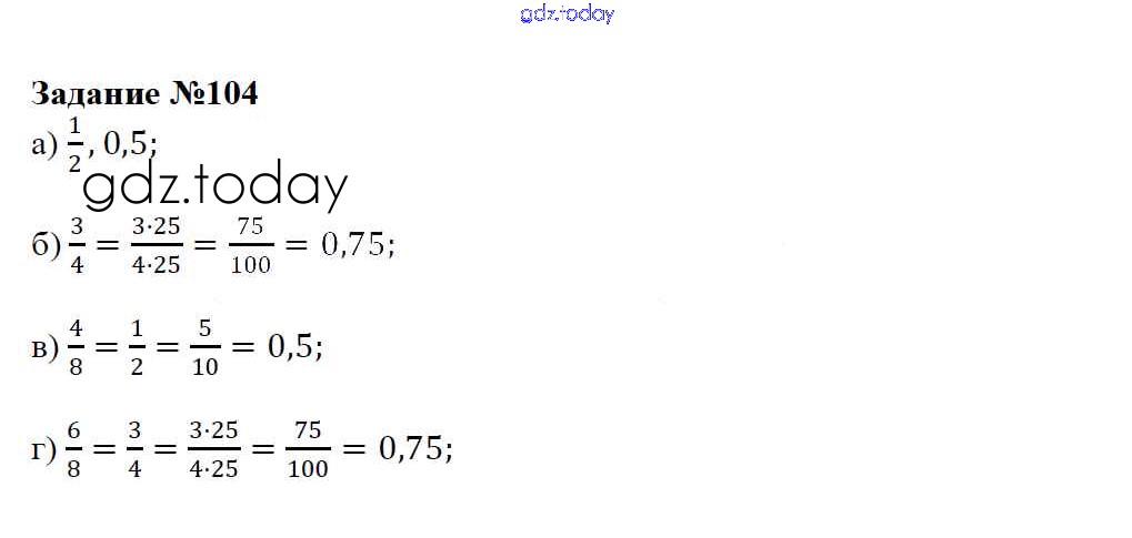 Ответы к Решение к упражнениям 104 Учебнику по Математике для 6 класса Зубарева, Мордкович Мнемозина 2015