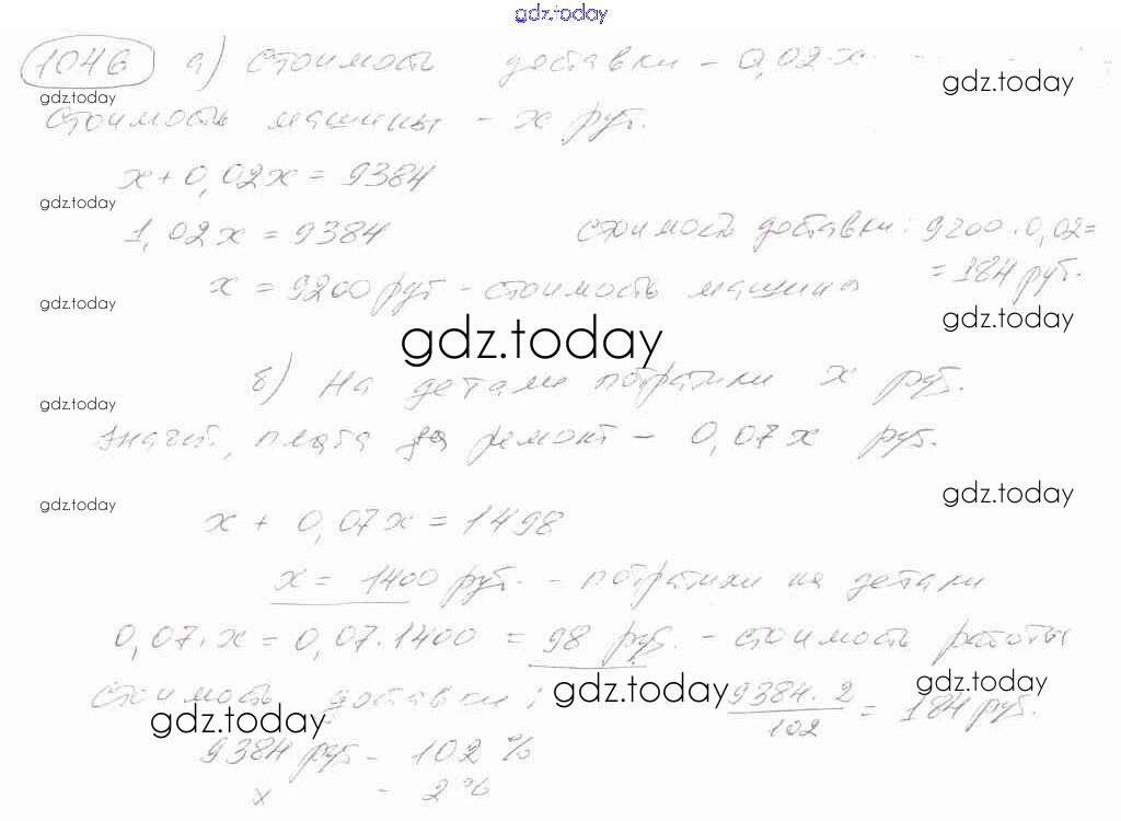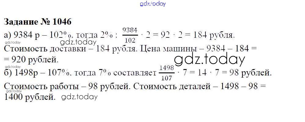 Ответы к Решение к упражнениям 1046 Учебнику по Математике для 6 класса Зубарева, Мордкович Мнемозина 2015