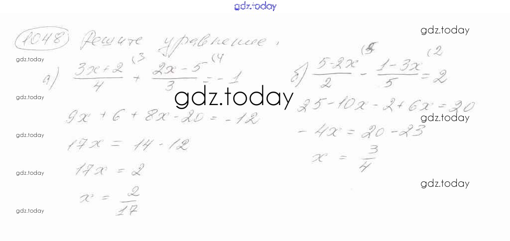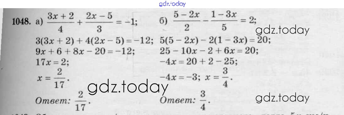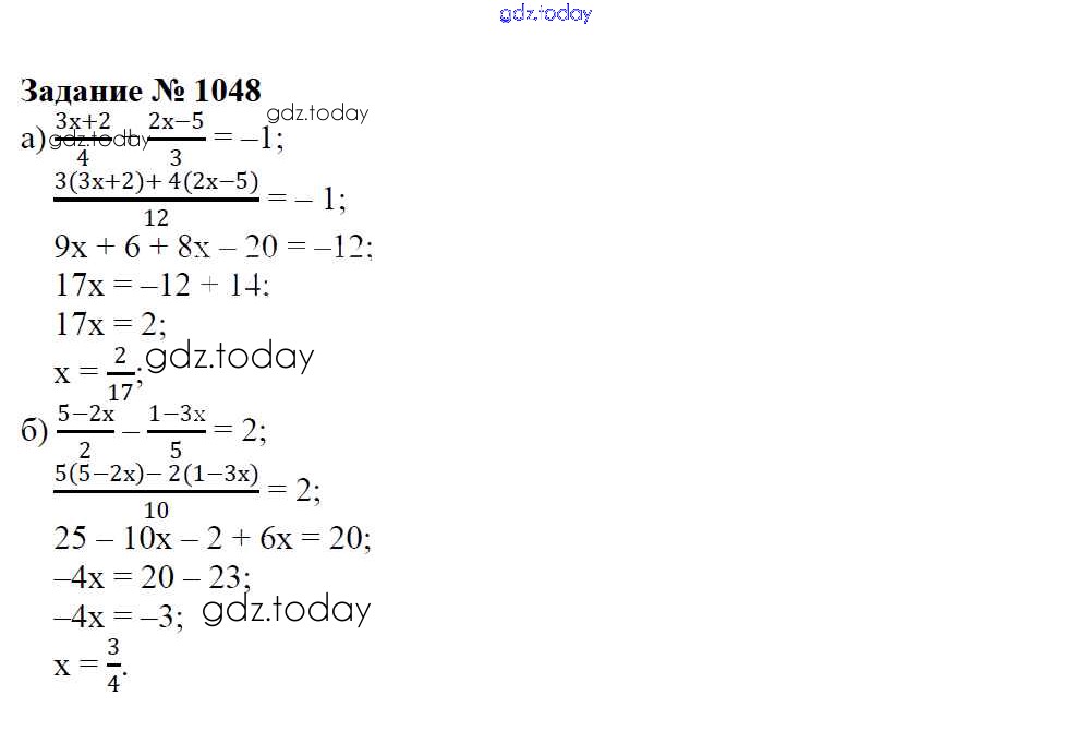 Ответы к Решение к упражнениям 1048 Учебнику по Математике для 6 класса Зубарева, Мордкович Мнемозина 2015