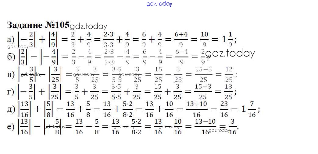 На страницах сайта gdz.today вы найдете учебный и вспомогательный материал, направленный на улучшения знаний школьной программы. ГДЗ - онлайн мир знаний Решение к упражнениям 105 Учебнику по Математике для 6 класса Зубарева, Мордкович Мнемозина 2015