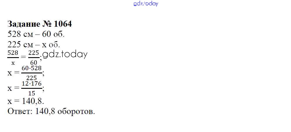 Ответы к Решение к упражнениям 1064 Учебнику по Математике для 6 класса Зубарева, Мордкович Мнемозина 2015