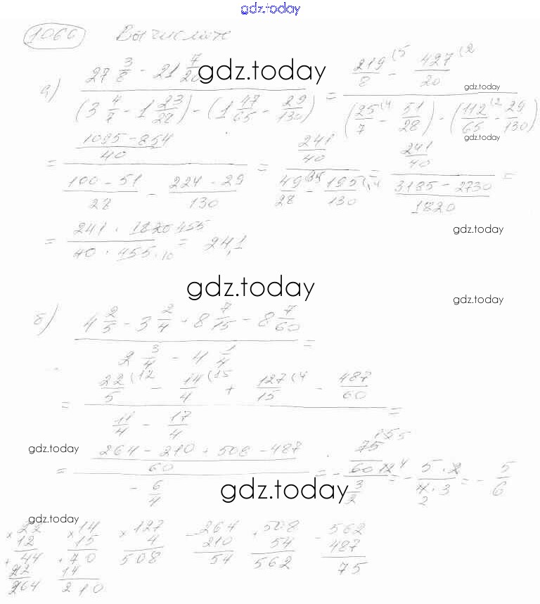 Ответы к Решение к упражнениям 1066 Учебнику по Математике для 6 класса Зубарева, Мордкович Мнемозина 2015
