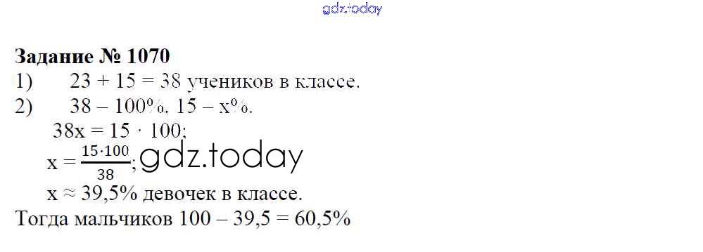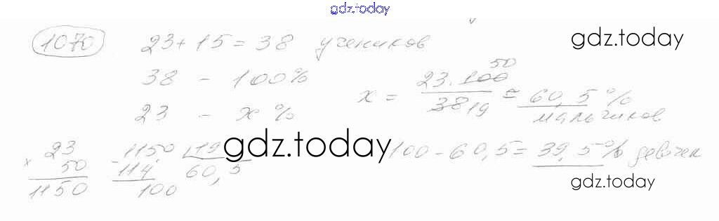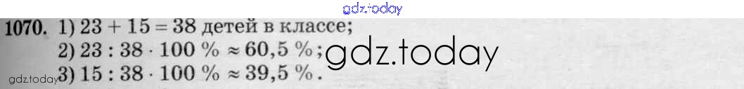 Ответы к Решение к упражнениям 1070 Учебнику по Математике для 6 класса Зубарева, Мордкович Мнемозина 2015