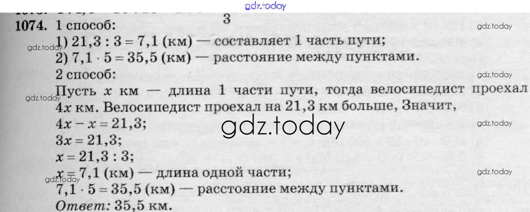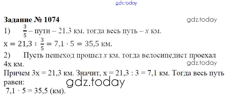 Ответы к Решение к упражнениям 1074 Учебнику по Математике для 6 класса Зубарева, Мордкович Мнемозина 2015