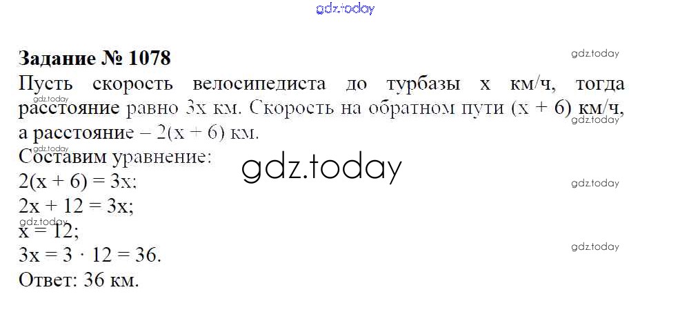 Ответы к Решение к упражнениям 1078 Учебнику по Математике для 6 класса Зубарева, Мордкович Мнемозина 2015