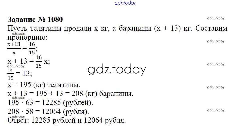 Ответы к Решение к упражнениям 1080 Учебнику по Математике для 6 класса Зубарева, Мордкович Мнемозина 2015