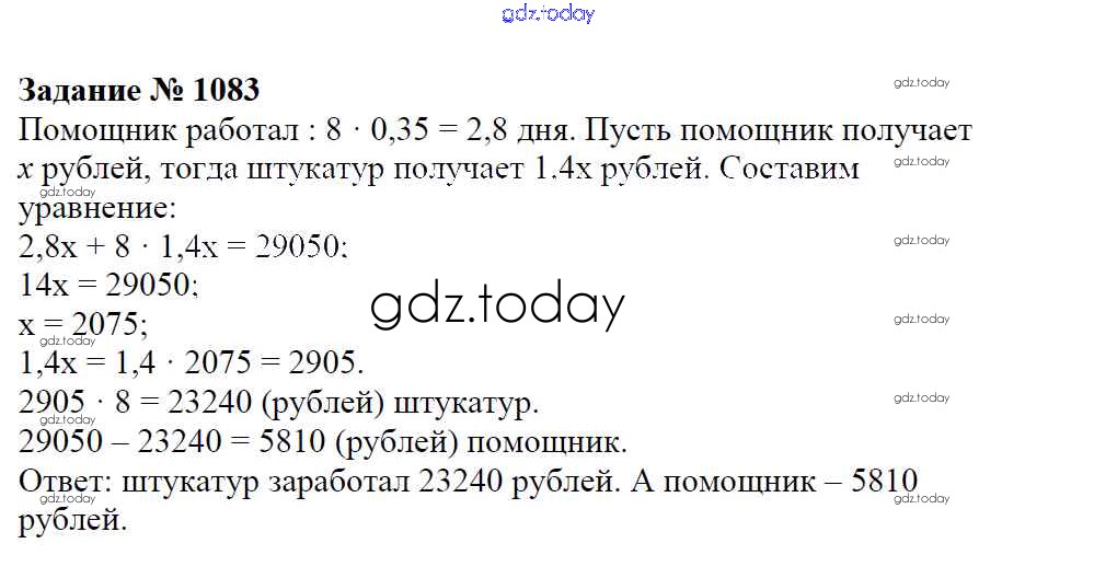 Ответы к Решение к упражнениям 1083 Учебнику по Математике для 6 класса Зубарева, Мордкович Мнемозина 2015