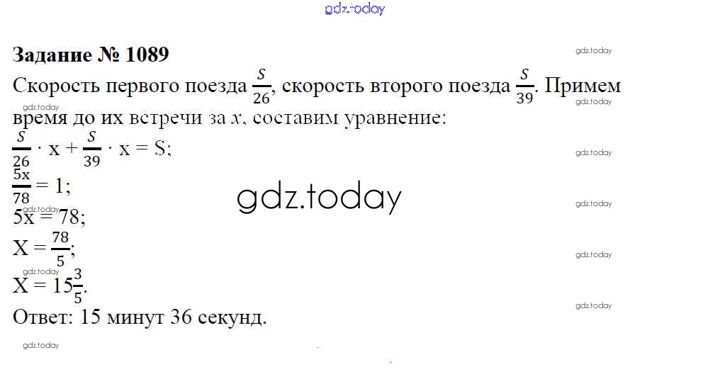 Ответы к Решение к упражнениям 1089 Учебнику по Математике для 6 класса Зубарева, Мордкович Мнемозина 2015