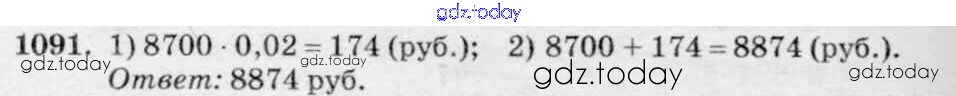 Ответы к Решение к упражнениям 1091 Учебнику по Математике для 6 класса Зубарева, Мордкович Мнемозина 2015