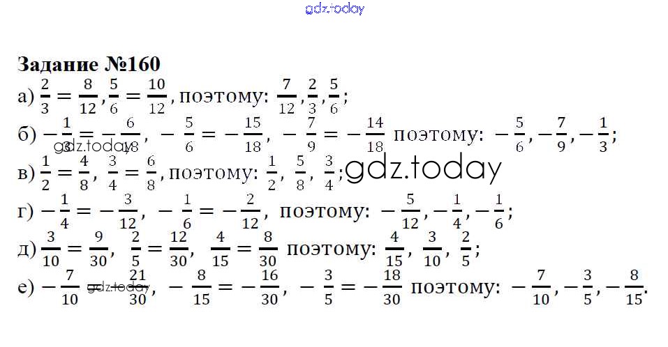 На страницах сайта gdz.today вы найдете учебный и вспомогательный материал, направленный на улучшения знаний школьной программы. ГДЗ - онлайн мир знаний Решение к упражнениям 160 Учебнику по Математике для 6 класса Зубарева, Мордкович Мнемозина 2015