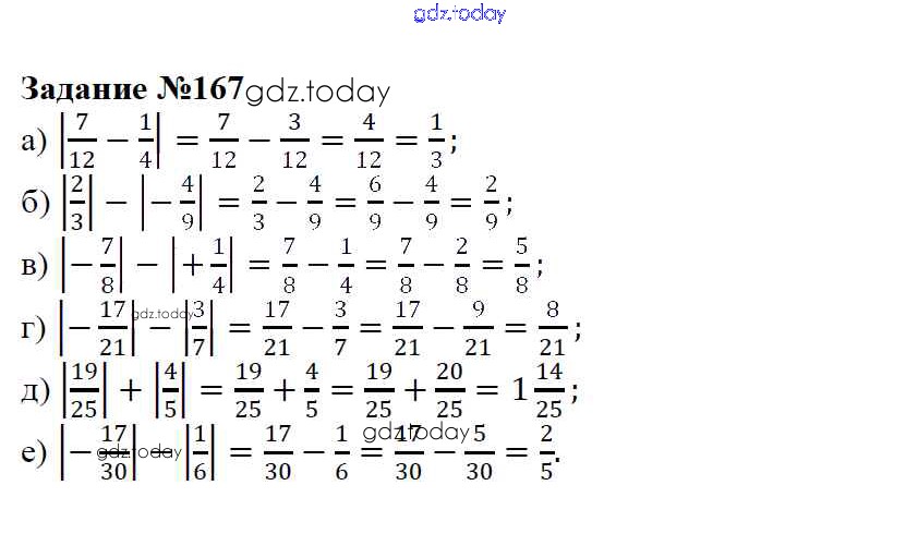 На страницах сайта gdz.today вы найдете учебный и вспомогательный материал, направленный на улучшения знаний школьной программы. ГДЗ - онлайн мир знаний Решение к упражнениям 167 Учебнику по Математике для 6 класса Зубарева, Мордкович Мнемозина 2015