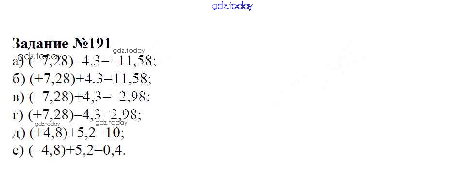 На страницах сайта gdz.today вы найдете учебный и вспомогательный материал, направленный на улучшения знаний школьной программы. ГДЗ - онлайн мир знаний Решение к упражнениям 191 Учебнику по Математике для 6 класса Зубарева, Мордкович Мнемозина 2015