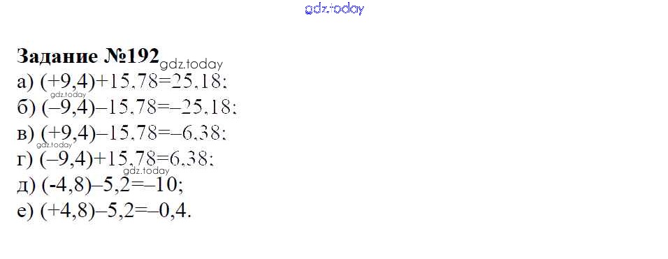 На страницах сайта gdz.today вы найдете учебный и вспомогательный материал, направленный на улучшения знаний школьной программы. ГДЗ - онлайн мир знаний Решение к упражнениям 192 Учебнику по Математике для 6 класса Зубарева, Мордкович Мнемозина 2015