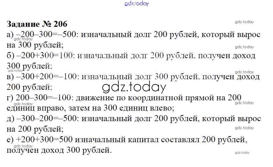 Ответы к Решение к упражнениям 206 Учебнику по Математике для 6 класса Зубарева, Мордкович Мнемозина 2015