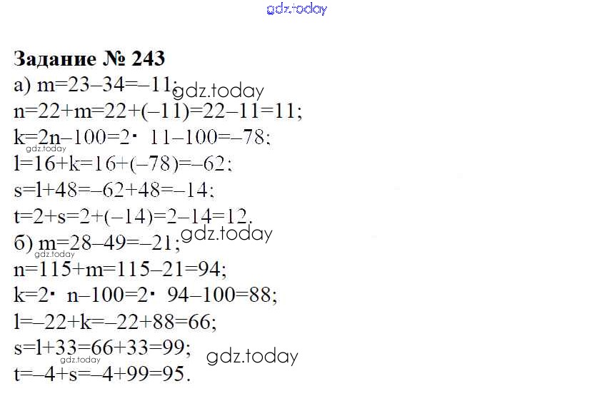 Ответы к Решение к упражнениям 243 Учебнику по Математике для 6 класса Зубарева, Мордкович Мнемозина 2015