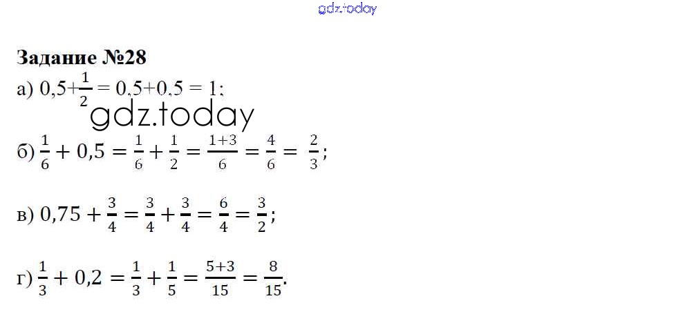 Ответы к Решение к упражнениям 28 Учебнику по Математике для 6 класса Зубарева, Мордкович Мнемозина 2015