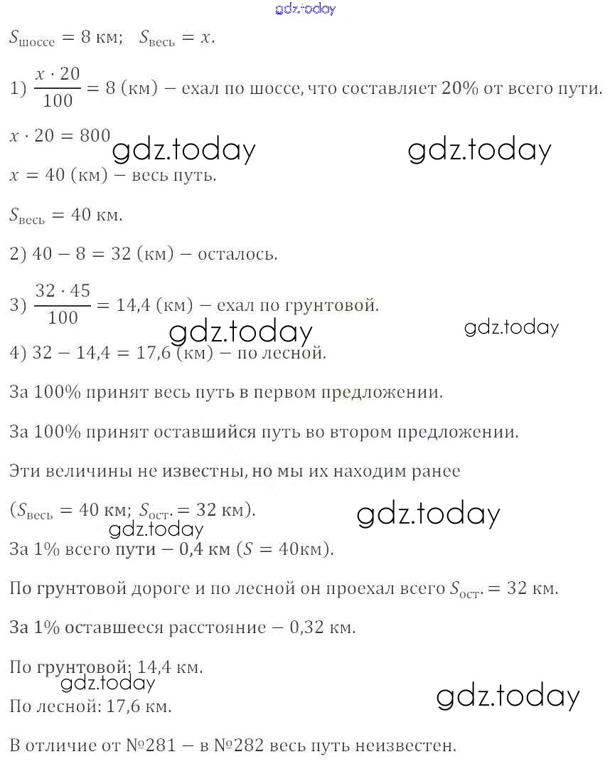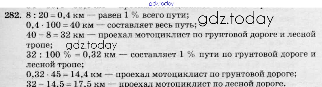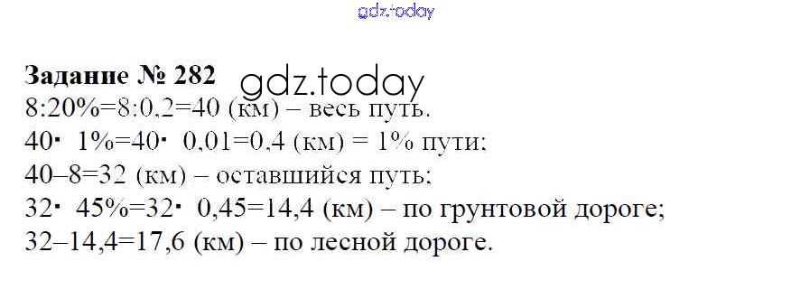 Ответы к Решение к упражнениям 282 Учебнику по Математике для 6 класса Зубарева, Мордкович Мнемозина 2015