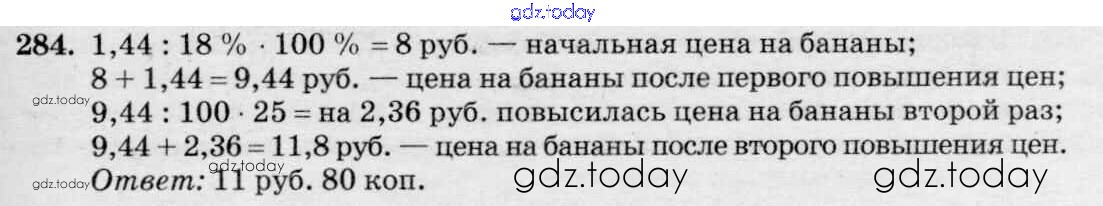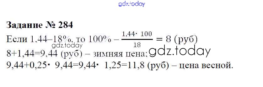 Ответы к Решение к упражнениям 284 Учебнику по Математике для 6 класса Зубарева, Мордкович Мнемозина 2015