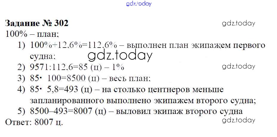 Ответы к Решение к упражнениям 302 Учебнику по Математике для 6 класса Зубарева, Мордкович Мнемозина 2015