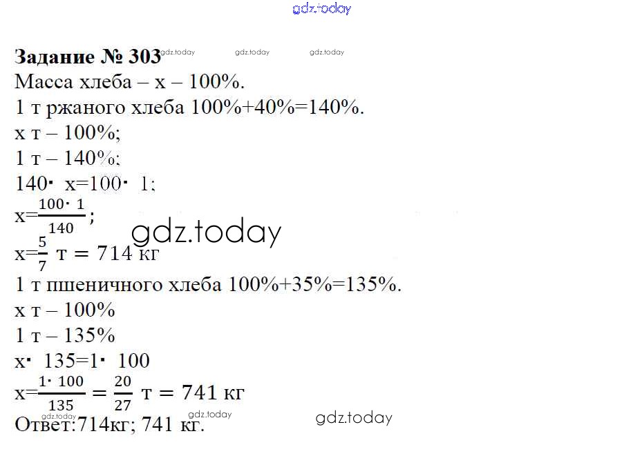 Ответы к Решение к упражнениям 303 Учебнику по Математике для 6 класса Зубарева, Мордкович Мнемозина 2015
