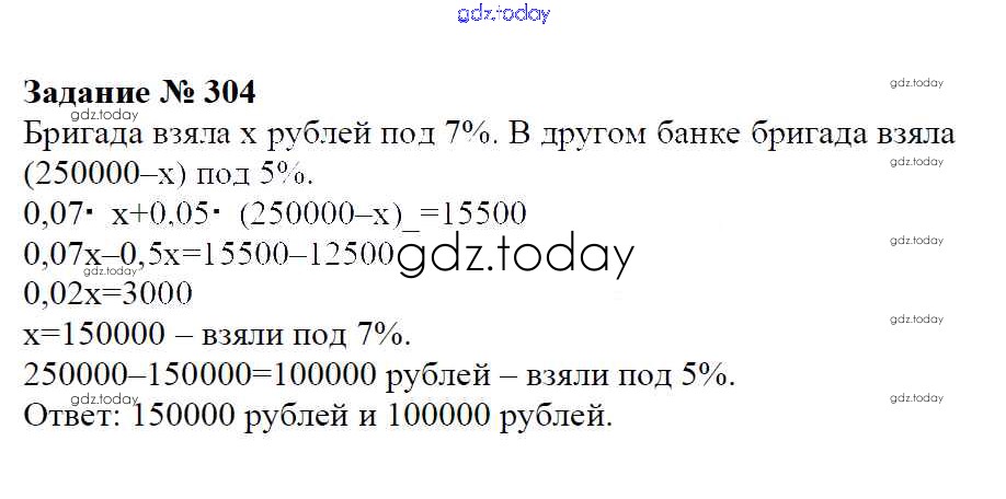 Ответы к Решение к упражнениям 304 Учебнику по Математике для 6 класса Зубарева, Мордкович Мнемозина 2015