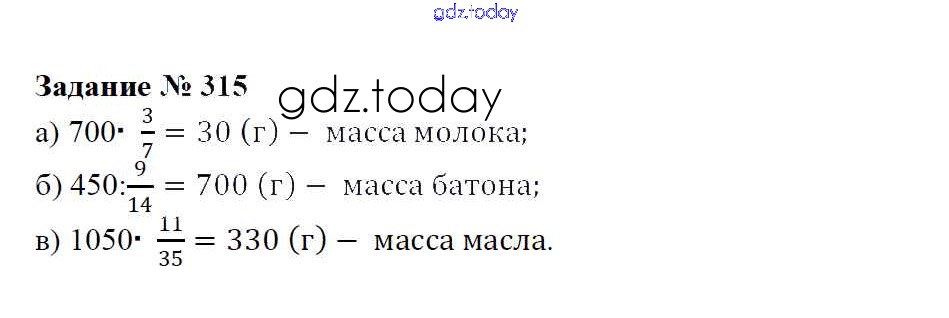 Ответы к Решение к упражнениям 315 Учебнику по Математике для 6 класса Зубарева, Мордкович Мнемозина 2015