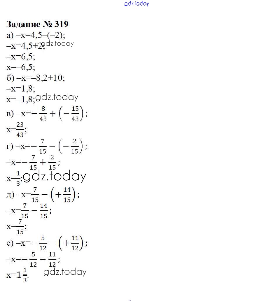 Ответы к Решение к упражнениям 319 Учебнику по Математике для 6 класса Зубарева, Мордкович Мнемозина 2015
