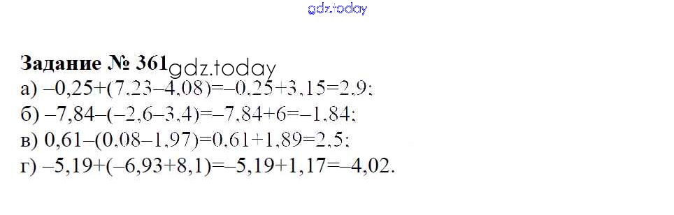 На страницах сайта gdz.today вы найдете учебный и вспомогательный материал, направленный на улучшения знаний школьной программы. ГДЗ - онлайн мир знаний Решение к упражнениям 361 Учебнику по Математике для 6 класса Зубарева, Мордкович Мнемозина 2015