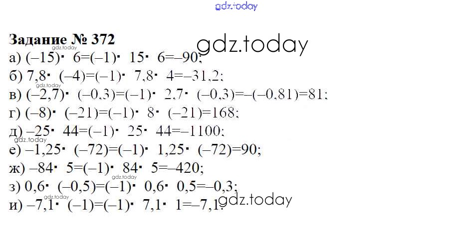 На страницах сайта gdz.today вы найдете учебный и вспомогательный материал, направленный на улучшения знаний школьной программы. ГДЗ - онлайн мир знаний Решение к упражнениям 372 Учебнику по Математике для 6 класса Зубарева, Мордкович Мнемозина 2015