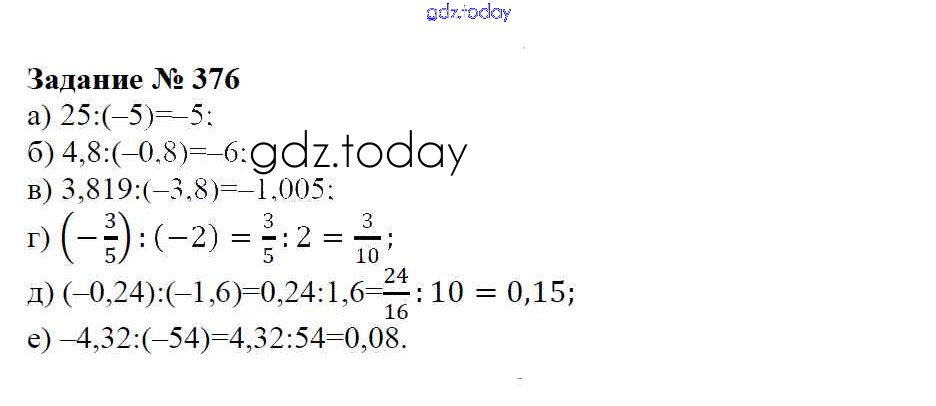 На страницах сайта gdz.today вы найдете учебный и вспомогательный материал, направленный на улучшения знаний школьной программы. ГДЗ - онлайн мир знаний Решение к упражнениям 376 Учебнику по Математике для 6 класса Зубарева, Мордкович Мнемозина 2015