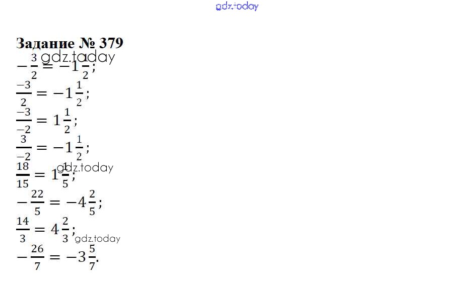 На страницах сайта gdz.today вы найдете учебный и вспомогательный материал, направленный на улучшения знаний школьной программы. ГДЗ - онлайн мир знаний Решение к упражнениям 379 Учебнику по Математике для 6 класса Зубарева, Мордкович Мнемозина 2015