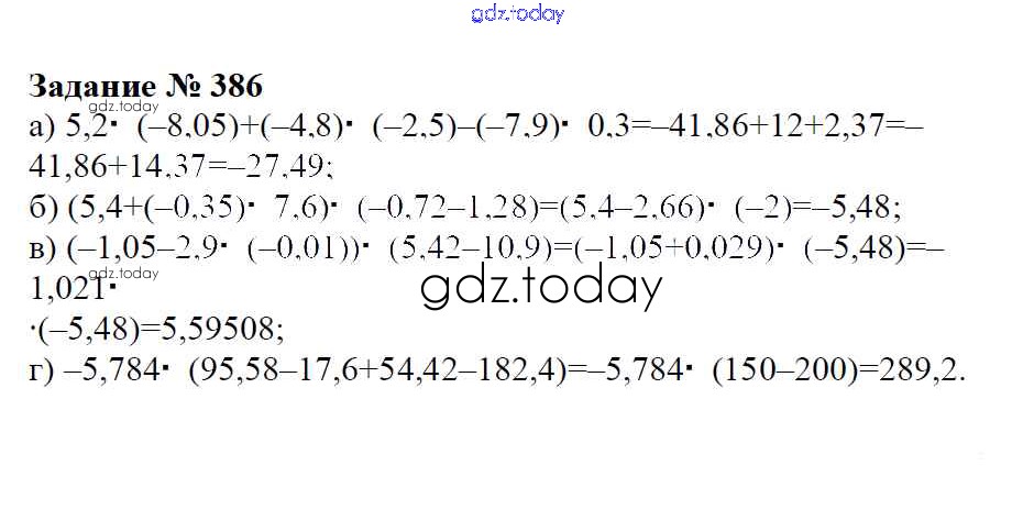 Ответы к Решение к упражнениям 386 Учебнику по Математике для 6 класса Зубарева, Мордкович Мнемозина 2015