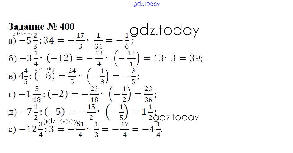 Ответы к Решение к упражнениям 400 Учебнику по Математике для 6 класса Зубарева, Мордкович Мнемозина 2015