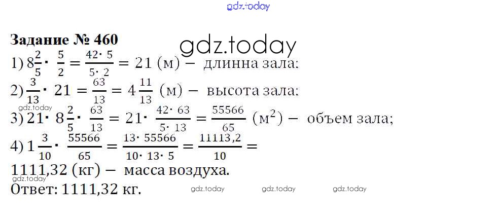 Ответы к Решение к упражнениям 460 Учебнику по Математике для 6 класса Зубарева, Мордкович Мнемозина 2015