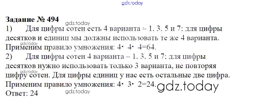 Ответы к Решение к упражнениям 494 Учебнику по Математике для 6 класса Зубарева, Мордкович Мнемозина 2015