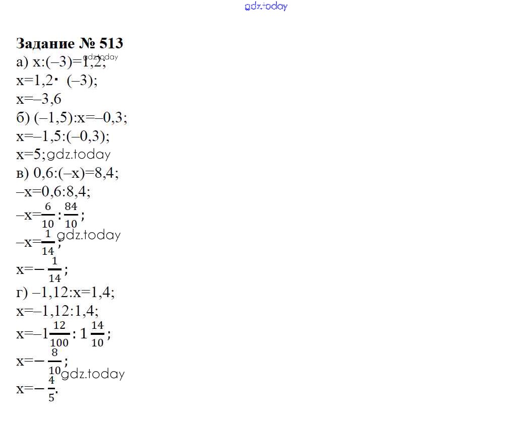 На страницах сайта gdz.today вы найдете учебный и вспомогательный материал, направленный на улучшения знаний школьной программы. ГДЗ - онлайн мир знаний Решение к упражнениям 513 Учебнику по Математике для 6 класса Зубарева, Мордкович Мнемозина 2015