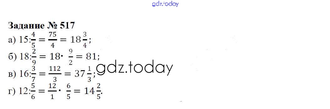 Ответы к Решение к упражнениям 517 Учебнику по Математике для 6 класса Зубарева, Мордкович Мнемозина 2015
