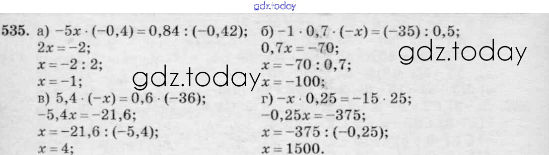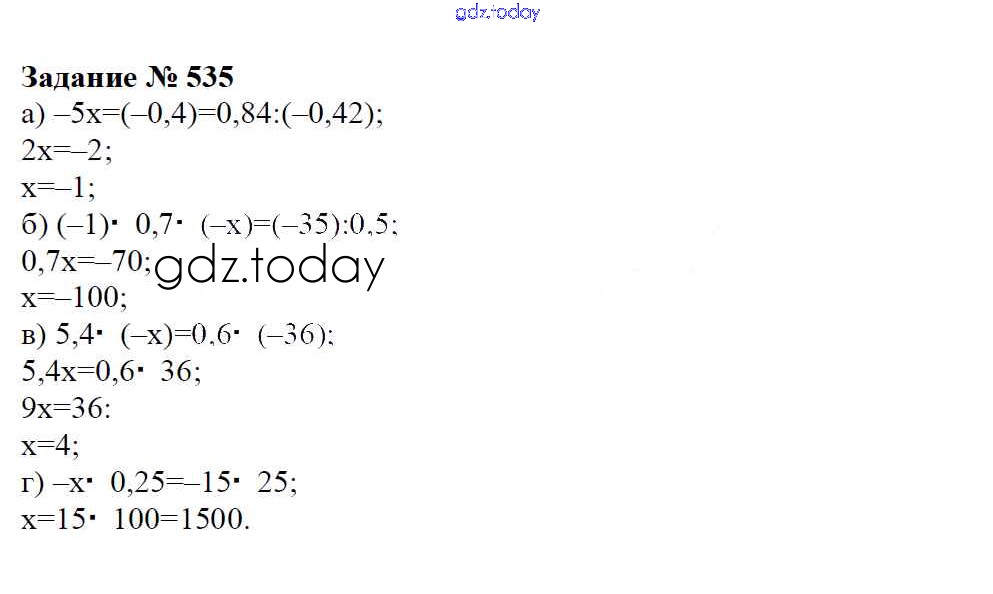 Ответы к Решение к упражнениям 535 Учебнику по Математике для 6 класса Зубарева, Мордкович Мнемозина 2015