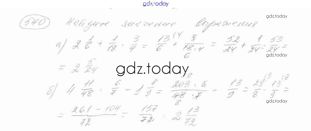 Ответы к Решение к упражнениям 540 Учебнику по Математике для 6 класса Зубарева, Мордкович Мнемозина 2015