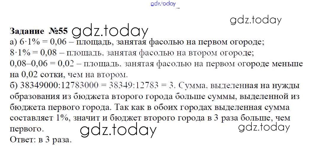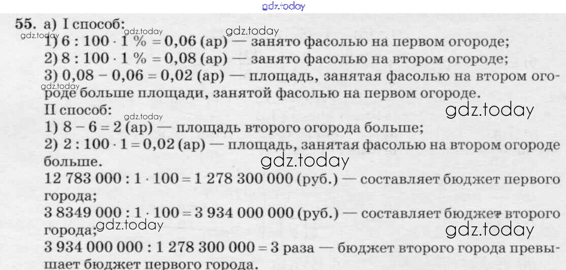 Ответы к Решение к упражнениям 55 Учебнику по Математике для 6 класса Зубарева, Мордкович Мнемозина 2015