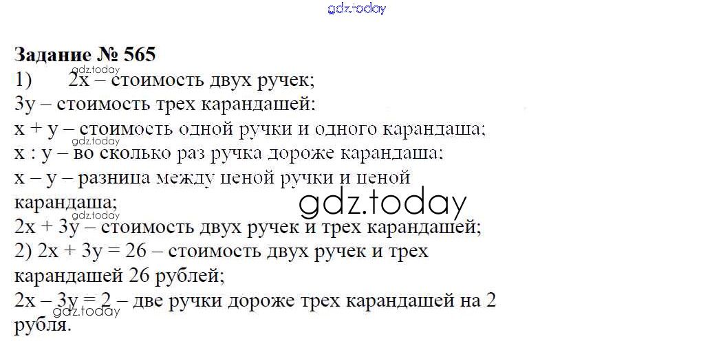 Ответы к Решение к упражнениям 565 Учебнику по Математике для 6 класса Зубарева, Мордкович Мнемозина 2015
