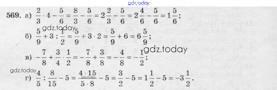 Ответы к Решение к упражнениям 569 Учебнику по Математике для 6 класса Зубарева, Мордкович Мнемозина 2015