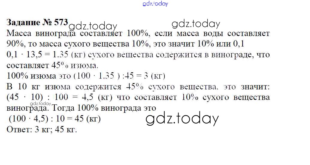 Ответы к Решение к упражнениям 573 Учебнику по Математике для 6 класса Зубарева, Мордкович Мнемозина 2015