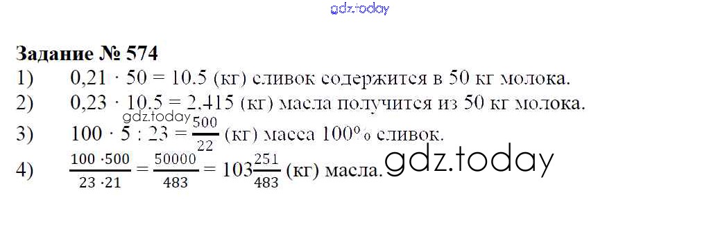Ответы к Решение к упражнениям 574 Учебнику по Математике для 6 класса Зубарева, Мордкович Мнемозина 2015