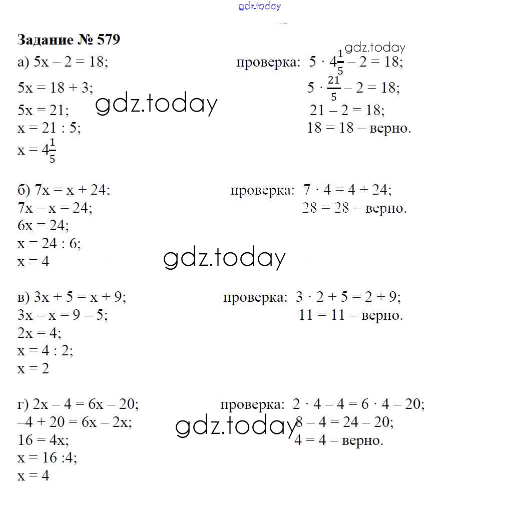 Ответы к Решение к упражнениям 579 Учебнику по Математике для 6 класса Зубарева, Мордкович Мнемозина 2015