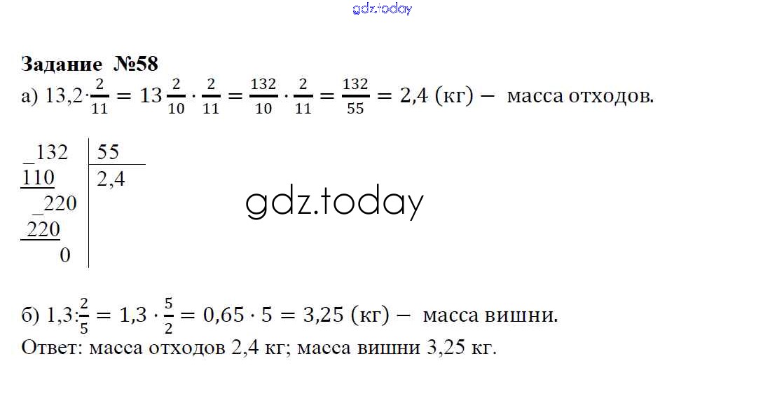 Ответы к Решение к упражнениям 58 Учебнику по Математике для 6 класса Зубарева, Мордкович Мнемозина 2015