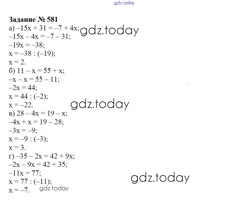 Ответы к Решение к упражнениям 581 Учебнику по Математике для 6 класса Зубарева, Мордкович Мнемозина 2015