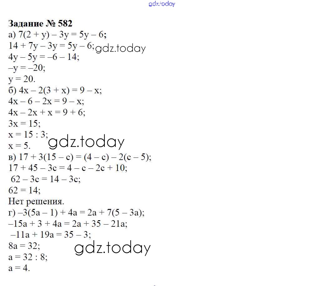 Ответы к Решение к упражнениям 582 Учебнику по Математике для 6 класса Зубарева, Мордкович Мнемозина 2015